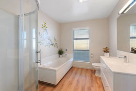 Two modern bathrooms, one with separate bath and shower