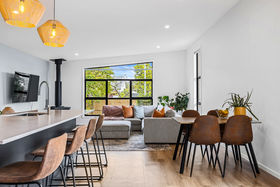 Three generous double bedrooms are served by a beautifully appointed bathroom and separate toilet, while an oversized garage and ample off-street parking add everyday ease. The open-plan kitchen and living domain forms the heart of the home, warm, welcoming, and seamlessly connected outdoors. Bosch appliances, soft-close cabinetry with premium Blum hardware, and generous storage ensure the space performs as impressively as it presents.